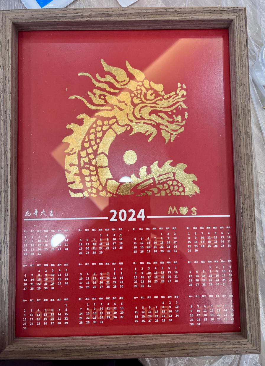 年画的制作可以追溯到唐宋时期,代表着人们对丰收和平安的祈福,缩映了人民对美好生活的向往。本期集团工会活动组织的年画手工,即采用薄如蝉翼的箔纸,对现场手工描绘的龙纹图样进行“贴金”,形成一幅龙年日历的年画作品。