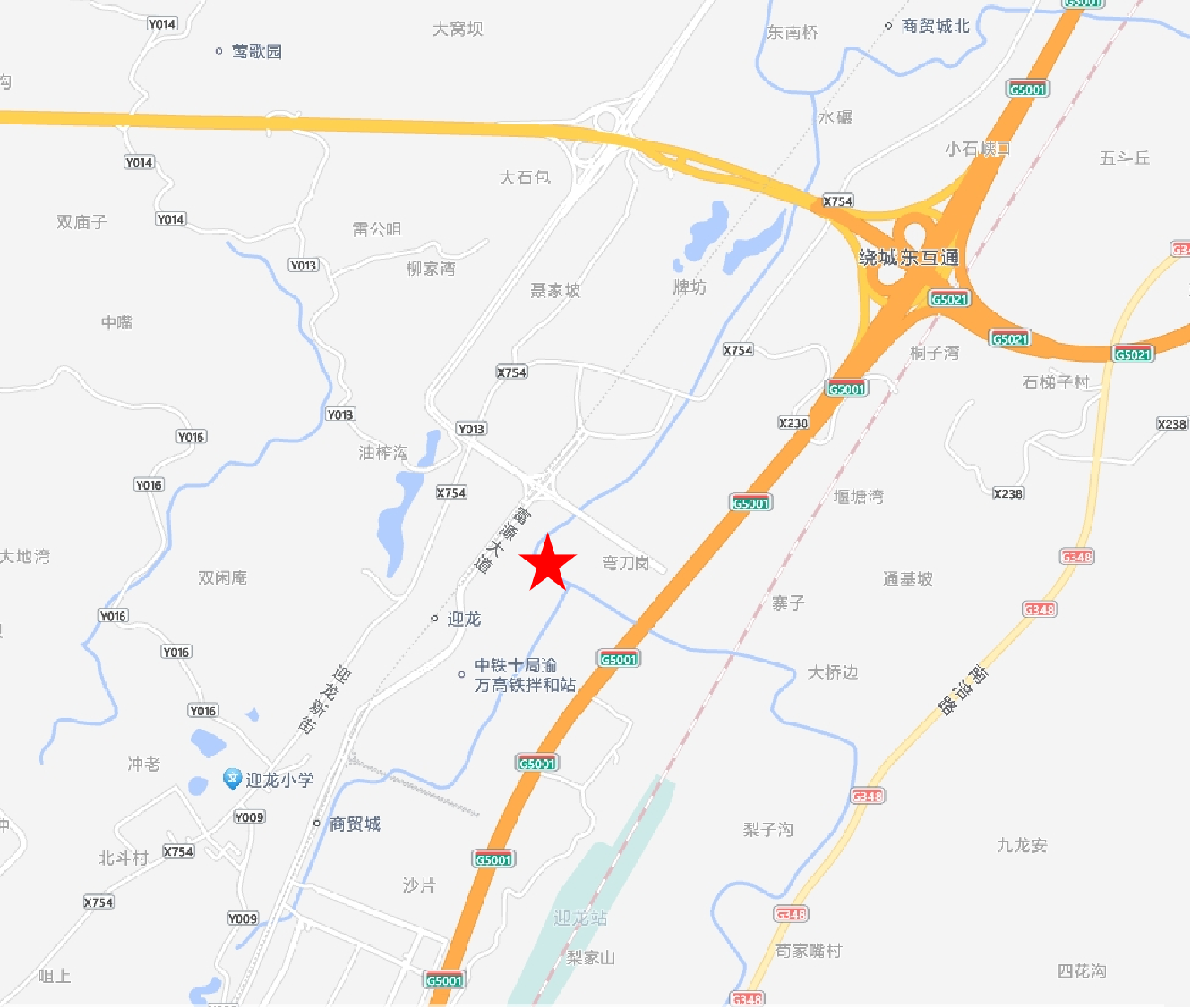 区域北段靠近绕城东互通,南边靠近绕城迎龙互通,东边靠近重庆东站。目前重庆东站和轨道交通24号线的建设均在进行中。