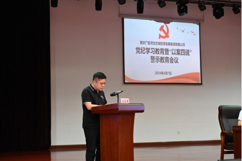 6月7日下午,广阳湾投资集团召开党纪学习教育暨“以案四说”警示教育会议,集团全体干部职工参加会议。