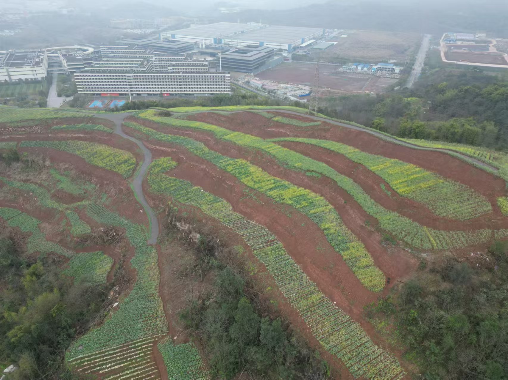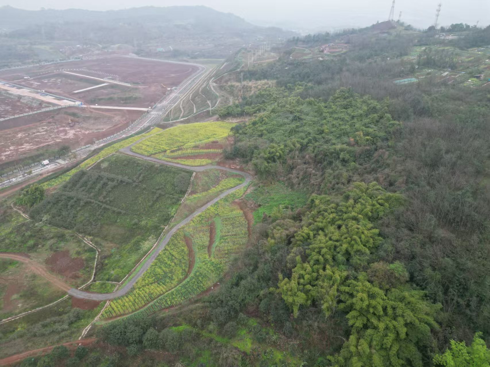 项目位于南岸区迎龙镇牛头山,紧邻vivo重庆智能制造中心,处于片区,周边交通网络完善,智能产业、企业基地集聚,打造“居住、产业、生态”和谐统一的现代化城市形态。项目所在片区承担城市重要绿色生态功能,地块全部完成征收储备,面积约158亩,规划用途为农林用地,现状为耕地。
