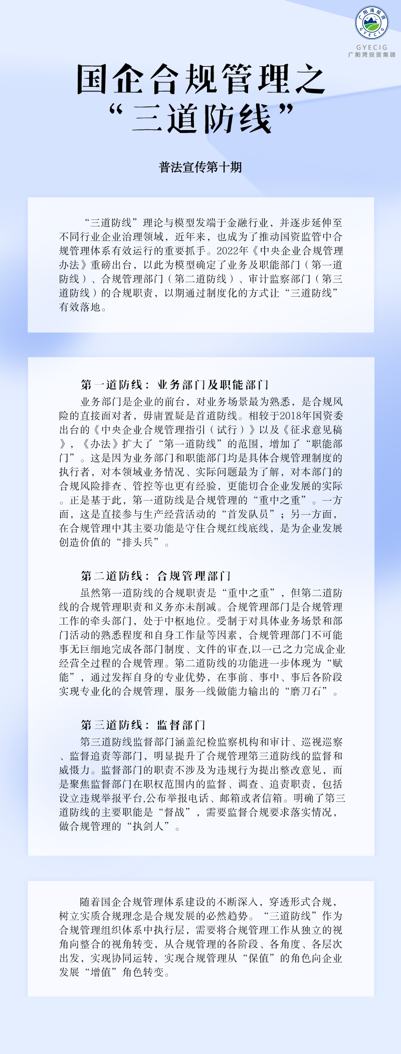 普法宣传2024年第十期之国企合规管理之“三道防线”