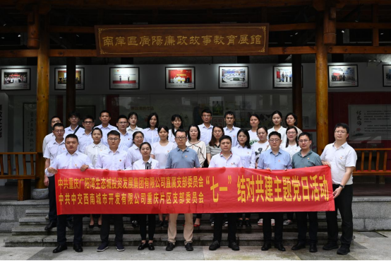 为庆祝建党103周年,深入推进开展党纪学习教育,在“七一”来临之际,6月28日下午,广阳湾投资集团直属党支部联合中交天津航道局有限公司重庆分公司重庆片区党支部共同组织党员、干部前往广阳廉政故事教育展馆开展“学纪守初心 思廉强党性”主题党日活动。