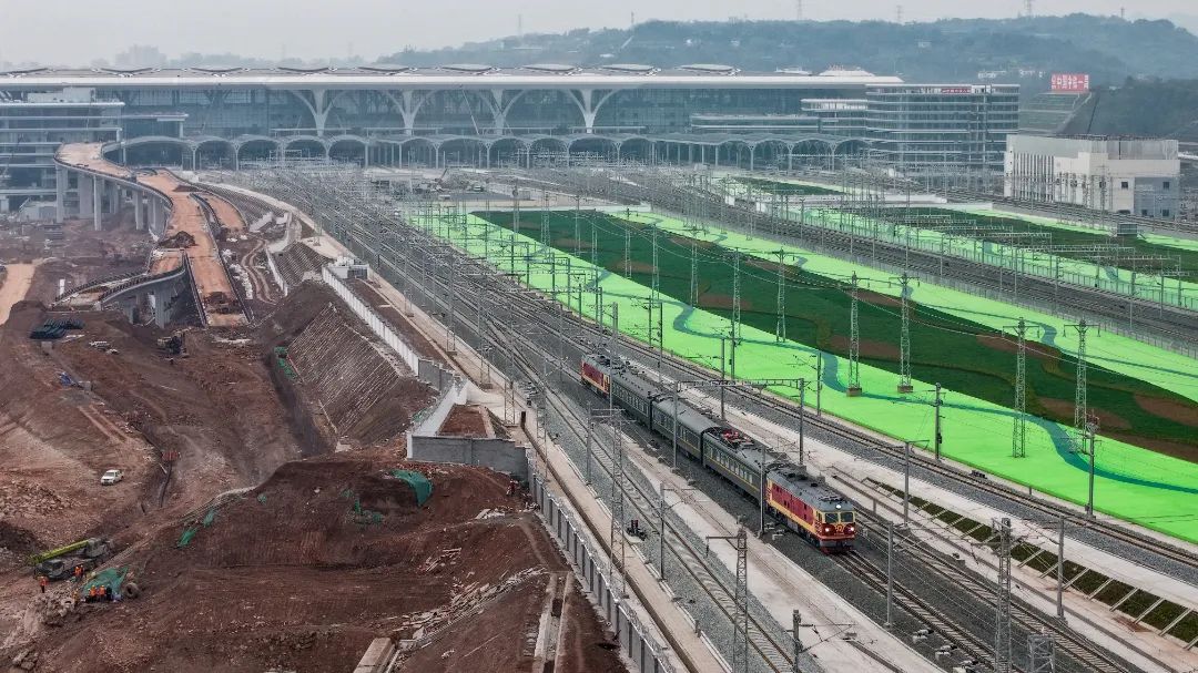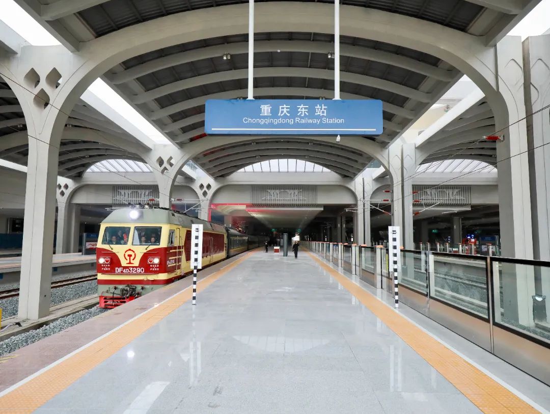 重庆东至黔江段于2020年5月开工建设,2024年10月9日开始铺轨,12月15日全线正线铺轨完成,2025年3月9日进入联调联试阶段。目前,重庆至重庆东的重庆菜园坝长江铁路隧道还未贯通,正在按施工计划稳步推进。