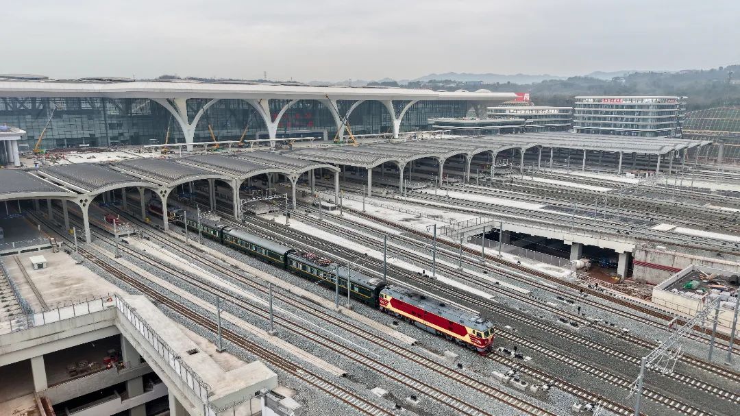 此次联调联试的是重庆东至黔江段,新建正线长度约250公里,全线共设车站7座,其中改建1座(黔江站)、新建6座(重庆东、巴南、南川北、水江西、武隆南、彭水西站)。