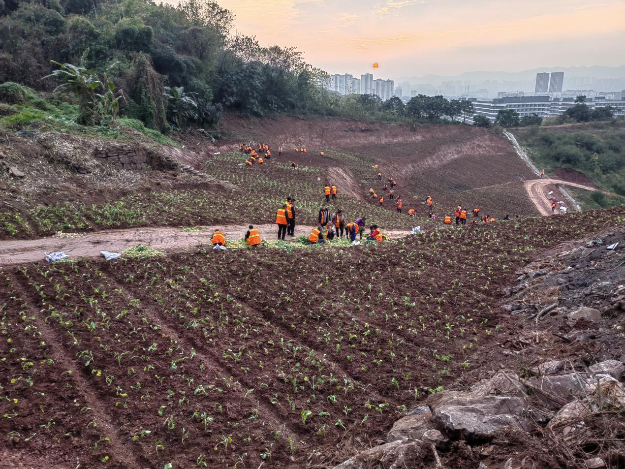 面对复耕区域地块平整度不够、地域落差大、土地坡度大、土壤极薄、肥力不够、无水源、缺少种苗、季节气温较低不宜栽种等难题,广阳湾投资集团吹响攻坚奋斗号角,充分发挥主观能动性,攻坚克难,千方百计解决复耕难题。集团会同专业农科团队,经过整整10天集中攻坚,共计种复耕、新种植面积约200亩,预计可为我区提供新增耕地约83亩。