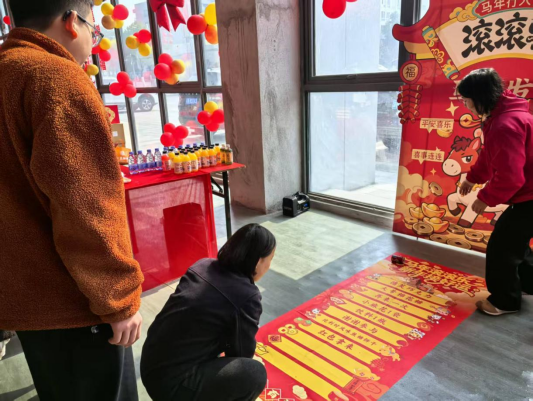 活动现场设置了”好运滚滚乐””欢乐套圈””沙包流星雨”等多项趣味传统项目,兼具娱乐性与参与性。各个游戏点前排起长龙,职工们或专注投入、或驻足观摩、或热情交流,笑语不断。糖画、糖葫芦等非遗美食体验区也吸引众人驻足品尝,让大家在美味中重温童年乐趣,感受浓浓年味。整场活动气氛热烈,欢声洋溢。